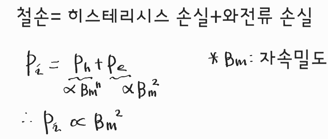 - 철심에 과잉 자속은 히스테리시스 및 와류손으로 과열