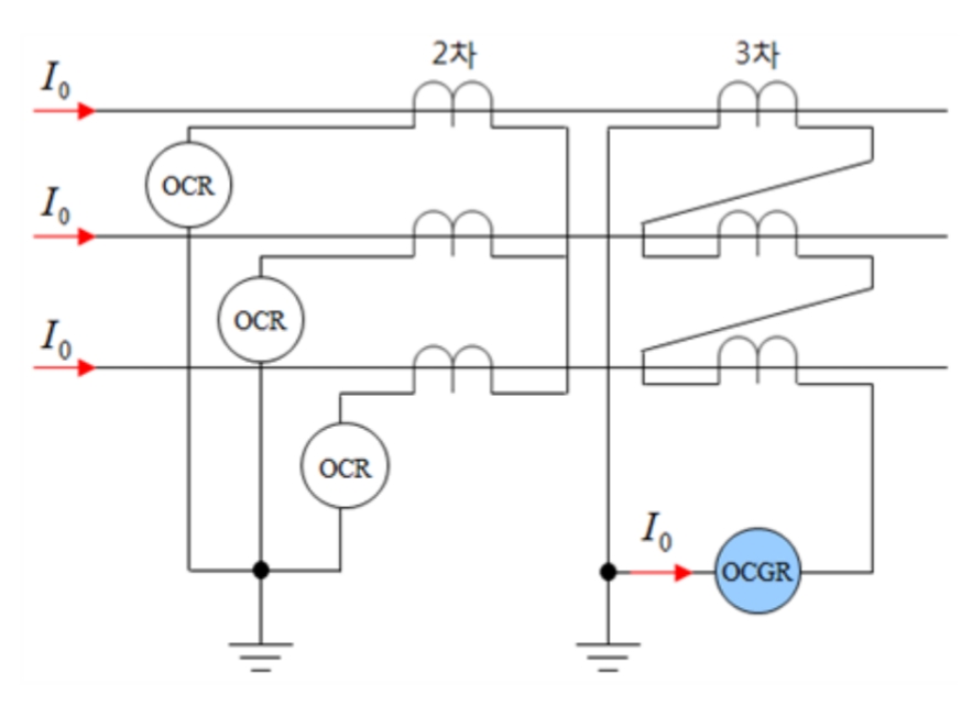 대신 3차권선에 △결선을 통한 영상분로접속을 하고 변류비가 낮은 CT를 설치하고 OCGR을 설치해서 영상전류를